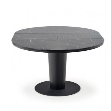 - Matmenys (ilgis/plotis/aukštis): 120/120/75 cm. Išskleisto stalo ilgis 160 cm.