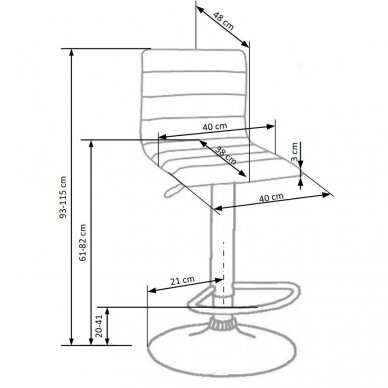 55 €61 €Sutaupykite 6 €Baro kėdė H101Matmenys: plotis - 47 cm, gylis - 45 cm, bendras aukštis - 84-106 cm, sėdimos dalies aukštis - 60-82 cm