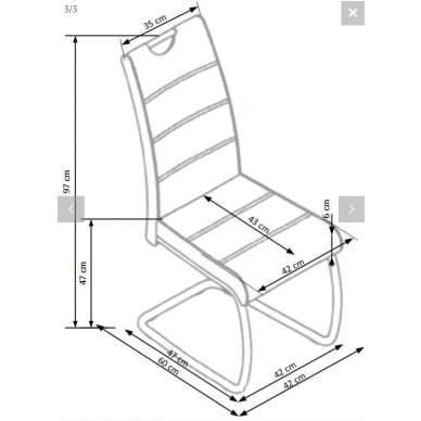 - Kėdės matmenys (gylis/plotis/aukštis): 60 cm / 42cm / 97cm