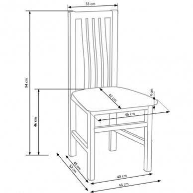 - Kėdės matmenys: Gylis 52 cm / Plotis 46 cm / Aukštis 94 cm.