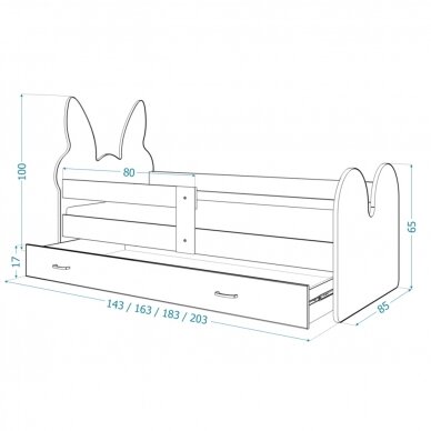 - Bendri išmatavimai (ilgis/plotis/aukštis): 143, 163, 183, 203 x 85 x 65 / 100 cm