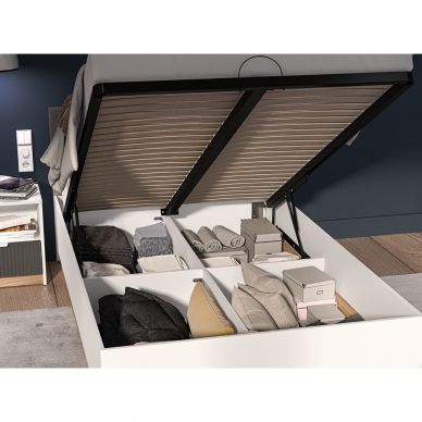 - Spalva: balta+MDF grafit +balta+ąžuolas castell. Galvūgalis – veliūras