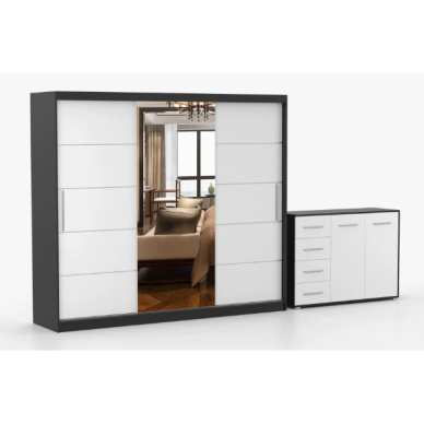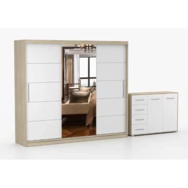 Spinta (2D) / Aukštis: 218 cm Ilgis: 203 cm Plotis: 61 cm Komoda (1D4S) / Aukštis: 96 cm Ilgis: 90 cm Plotis: 45 cm Lova (160x200) / Aukštis: 90 cm Ilgis: 207 cm Plotis: 169 cm Naktiniai staliukai / Aukštis: 47 cm Ilgis: 40 cm Plotis: 40 cm (2 vnt)1043 €1159 €Sutaupykite 116 €Miegamojo komplektas Allmo