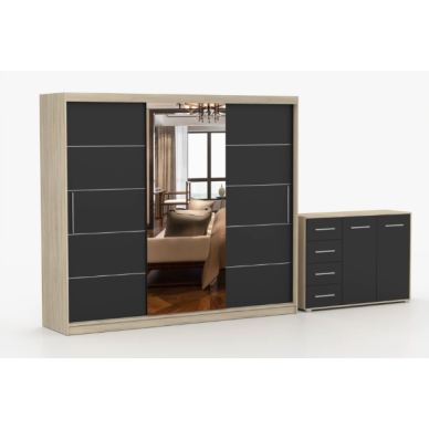 Spinta (220) / Aukštis: 220 cm Ilgis: 202,4 cm Plotis: 54 cm Komoda (138 d4s) / Aukštis: 90,5 cm Ilgis: 138,2 cm Plotis: 40 cm Lova (160) / Aukštis: 104,5 cm Ilgis: 164,4 cm Plotis: 210,4 cm Naktiniai staliukai / Aukštis: 60 cm Ilgis: 102 cm Plotis: 46 cm1382 €1536 €Sutaupykite 154 €-