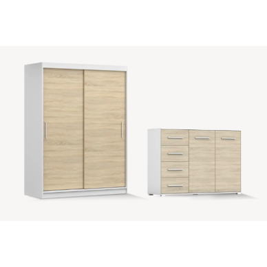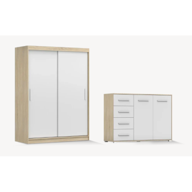 Spinta (220) / Aukštis: 220 cm Ilgis: 202,4 cm Plotis: 54 cm Komoda (138 d4s) / Aukštis: 90,5 cm Ilgis: 138,2 cm Plotis: 40 cm Lova (160) / Aukštis: 104,5 cm Ilgis: 164,4 cm Plotis: 210,4 cm Naktiniai staliukai / Aukštis: 60 cm Ilgis: 102 cm Plotis: 46 cm1505 €1672 €Sutaupykite 167 €-