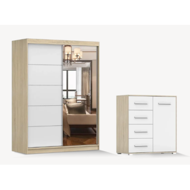 Spinta (220) / Aukštis: 220 cm Ilgis: 202,4 cm Plotis: 54 cm Komoda (138 d4s) / Aukštis: 90,5 cm Ilgis: 138,2 cm Plotis: 40 cm Lova (160) / Aukštis: 104,5 cm Ilgis: 164,4 cm Plotis: 210,4 cm Naktiniai staliukai / Aukštis: 60 cm Ilgis: 102 cm Plotis: 46 cm1505 €1672 €Sutaupykite 167 €-