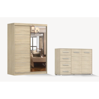 Spinta (220) / Aukštis: 220 cm Ilgis: 202,4 cm Plotis: 54 cm Komoda (138 d4s) / Aukštis: 90,5 cm Ilgis: 138,2 cm Plotis: 40 cm Lova (160) / Aukštis: 104,5 cm Ilgis: 164,4 cm Plotis: 210,4 cm Naktiniai staliukai / Aukštis: 60 cm Ilgis: 102 cm Plotis: 46 cm1382 €1536 €Sutaupykite 154 €Miegamojo komplektas Tally