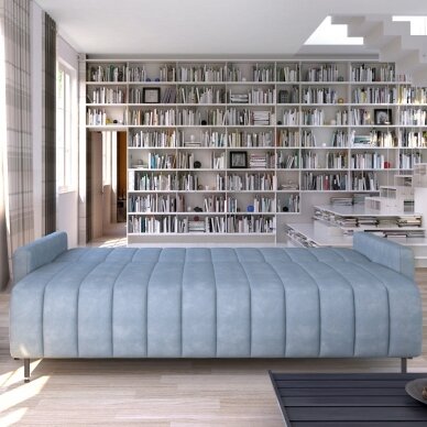 - Paprastos sofos tinka ten, kur gyvena vienas arba du žmonės. Jei reikia susodinti svečius, idealiai tinka daug vietos neužimantis pufas – jų galima įsigyti daugiau nei vieną, ir panaudoti tik tada, kai reikia.