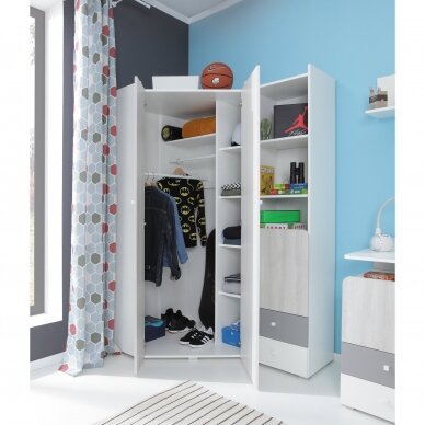 350 €389 €Sutaupykite 39 €Kampinė spinta MX1Plotis 135 cm / Aukštis 195 cm / Gylis 135 cm
