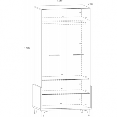 - Matmenys (plotis/ gylis/ aukštis): 95/ 62/ 195 cm