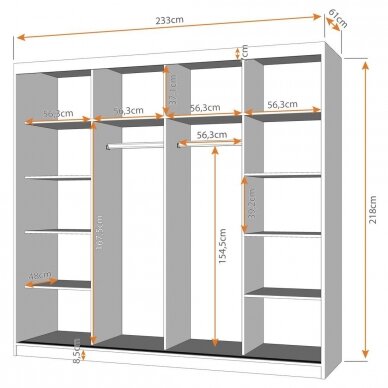 - Matmenys (plotis/ aukštis / gylis cm): 233 / 218 / 61