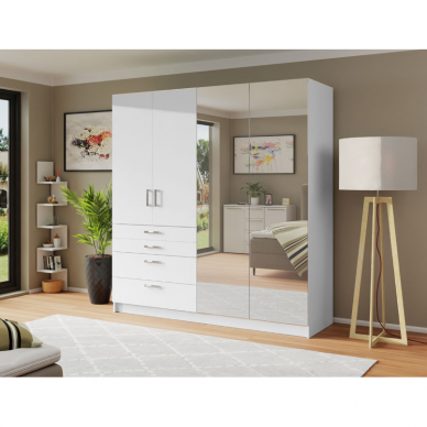 Taip pat, visų tipų spintos dažnai, bet ne visada, būna su veidrodžiu. Tai ypač patogu apsivilkus norimus drabužius pasižiūrėti ar pasirinkote tinkamą rūbų derinį, todėl labai pravartu pasirinkti spintą su veidrodžiu.Kampinė spinta arba L formos spinta
