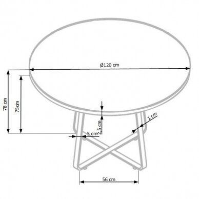 - Stalo matmenys (skersmuo / aukštis): 120 / 78 cm