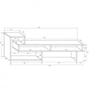 - Matmenys (plotis/aukštis/gylis): 146 cm x 49 cm x 35 cm